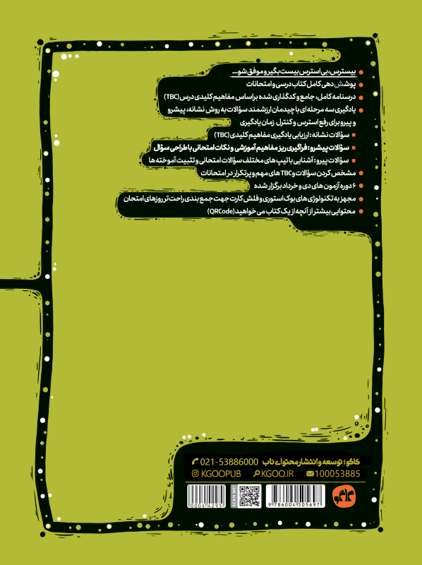تمام ویژگی های کتاب بر مبنای پاسخگویی به دغدغههای دانش آموز برای امتحانات (استرس و زمان و دسترسی به سوالات معتبر) طراحی شده، میگی نه نگاه کن!