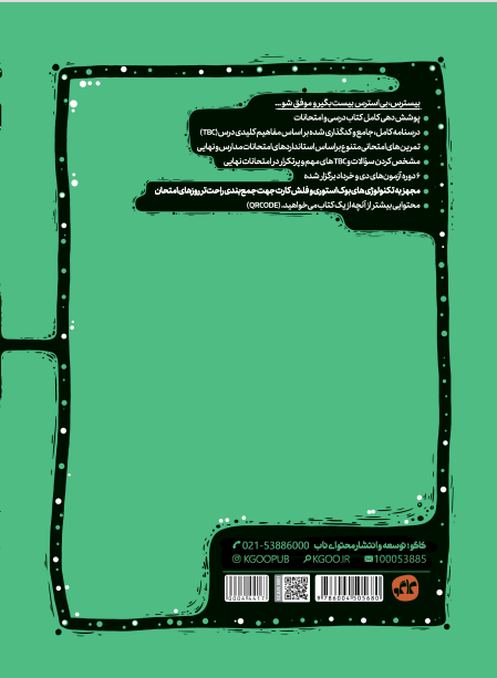 تمام ویژگی های کتاب بر مبنای پاسخگویی به دغدغههای دانش آموز برای امتحانات (استرس و زمان و دسترسی به سوالات معتبر) طراحی شده، میگی نه نگاه کن!