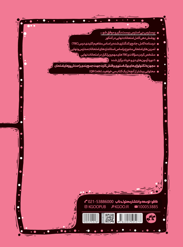 تمام ویژگی های کتاب بر مبنای پاسخگویی به دغدغههای دانش آموز برای امتحانات (استرس و زمان و دسترسی به سوالات معتبر) طراحی شده، میگی نه نگاه کن!