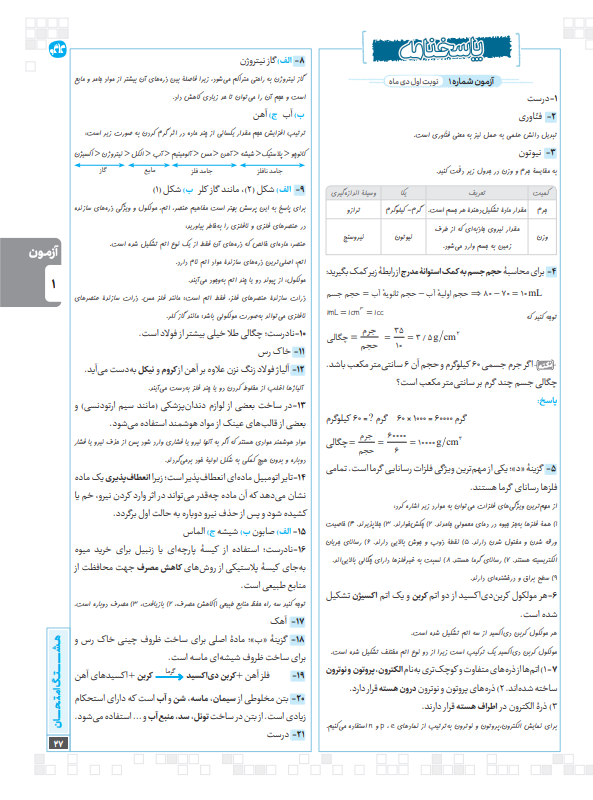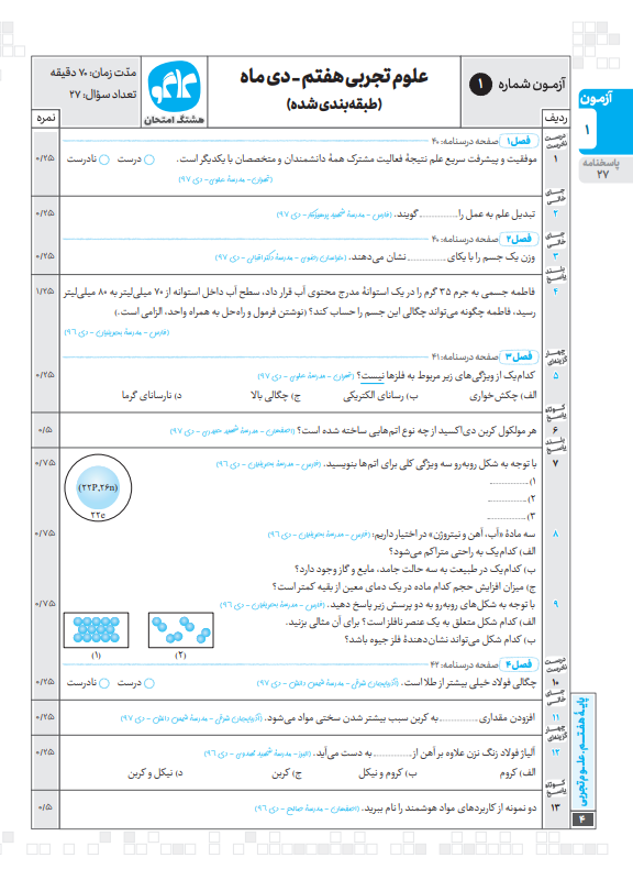 نمونه- کتاب- هشتگ -امتحان-علوم-هفتم