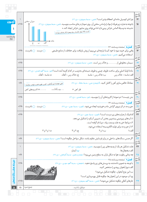 نمونهسؤالات واقعی میاننوبت و پایاننوبت مدارس کشور
