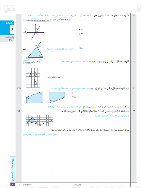 نمونه- کتاب- هشتگ امتحان- ریاضی- هفتم