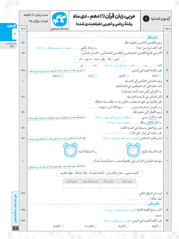 نمونه-کتاب-هشتگ -امتحان-عربی -دهم ریاضی و تجربی