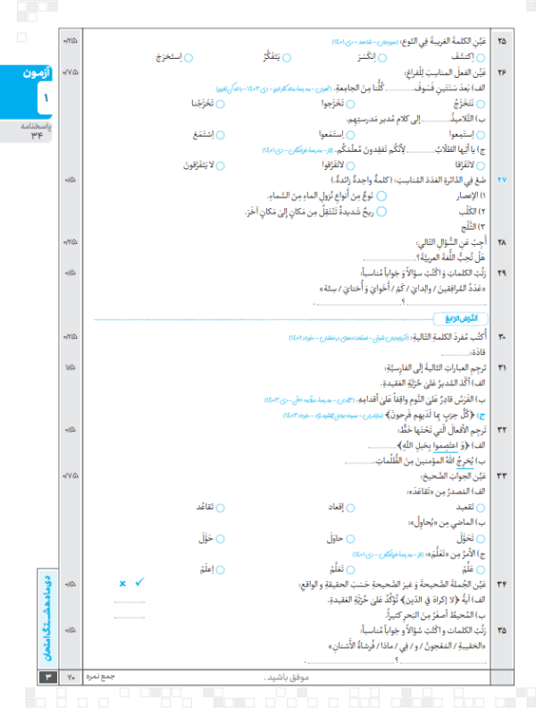 نمونهسؤالات واقعی میاننوبت و پایاننوبت مدارس کشور