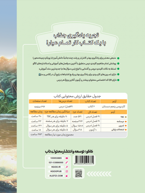 این مجموعه از سری کتابهای محبوب کاردروس با درسنامههای ساده و روان، تمرینهای متنوع و آزمونهای استاندارد، یادگیری پایه پنجم رو برای دانشآموزان جذاب، مؤثر و ماندگار میکنه.